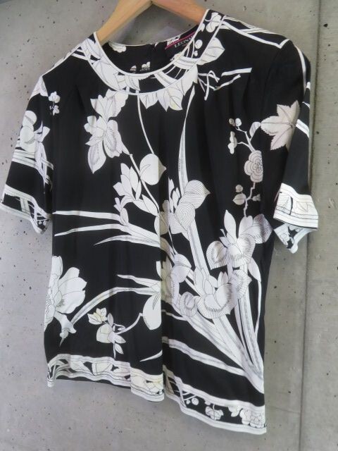 【送料300円可】7101s14◆日本製◆訳有◆LEONARD レオナール 花柄 半袖カットソーシャツ M/ブラウス/ジャケット/コート/ワンピース/ニット