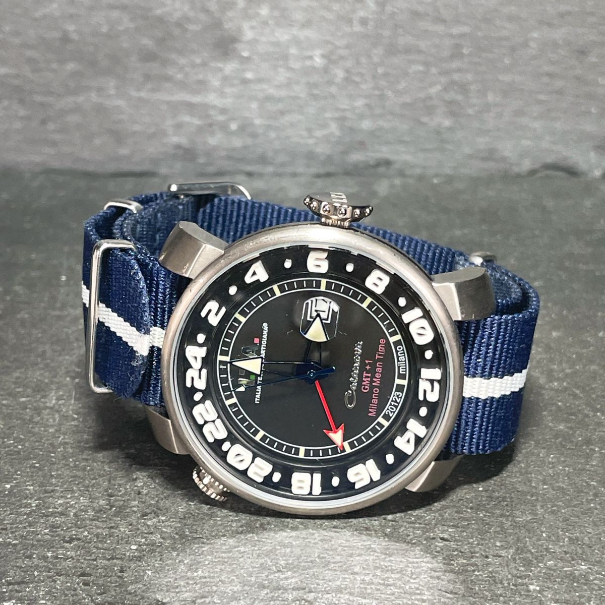 Product name: 美品 I.T.A 腕時計 アナログ クオーツ 3針 カレンダー ナイロンベルト ネイビー ラウンド ステンレス 新品電池交換済み 動作確認済み