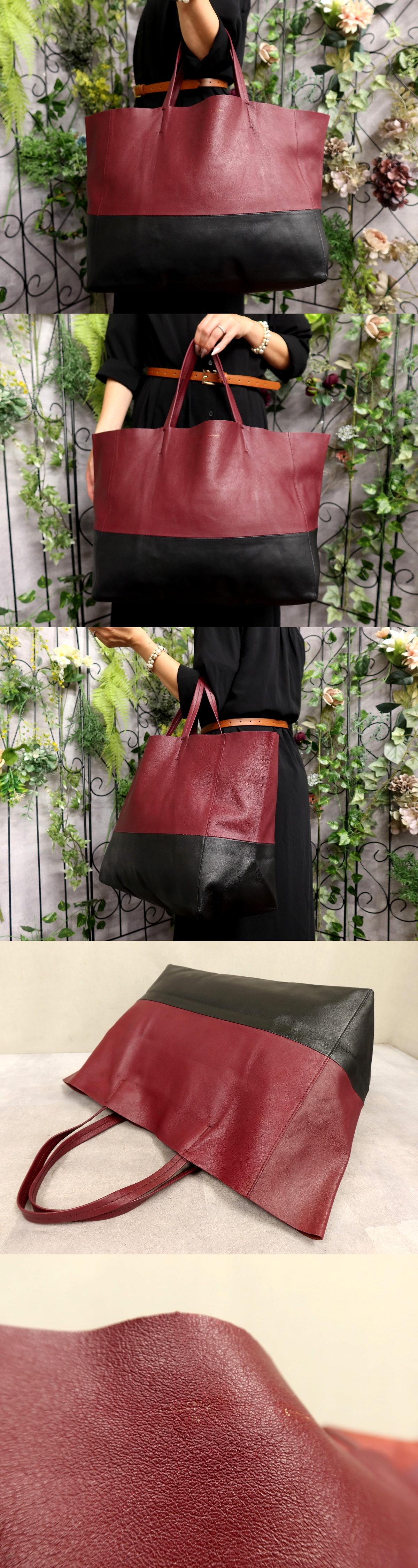 Product name: ●超美品●CELINE セリーヌ●ホリゾンタル カバ●カーフ レザー 本革●トート バッグ●ワインレッド 黒●腕掛け●ヴィンテージ●Js61271
