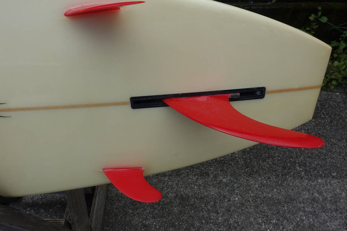 サイドフィンはオンフィンでタカヤマオリジナルでセンターフィンはFins unlimitedで’96年製の7インチでこちらは当時自分で買ったものでタカヤマオリジナルではございません。