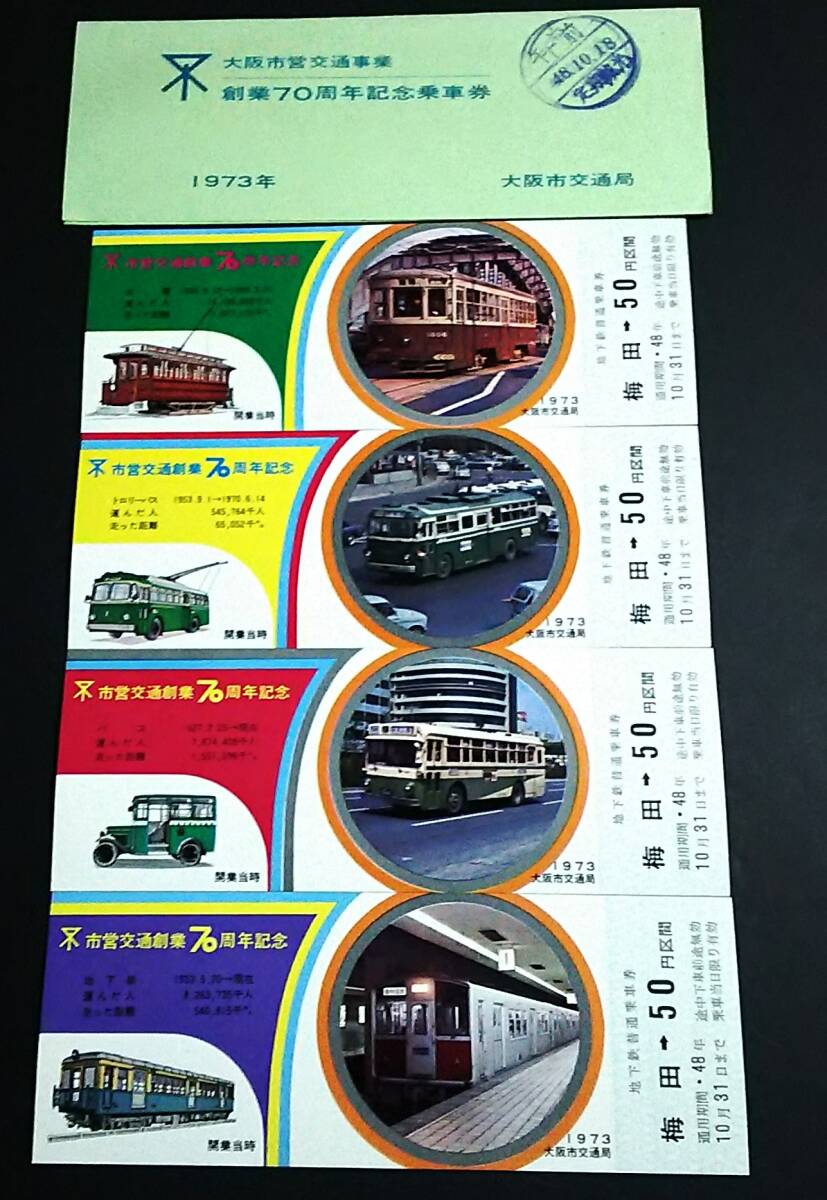 【記念きっぷ(乗車券)】 大阪市交通局『大阪市営交通事業創業70周年記念』梅田→50円 4枚セット S48.10.18