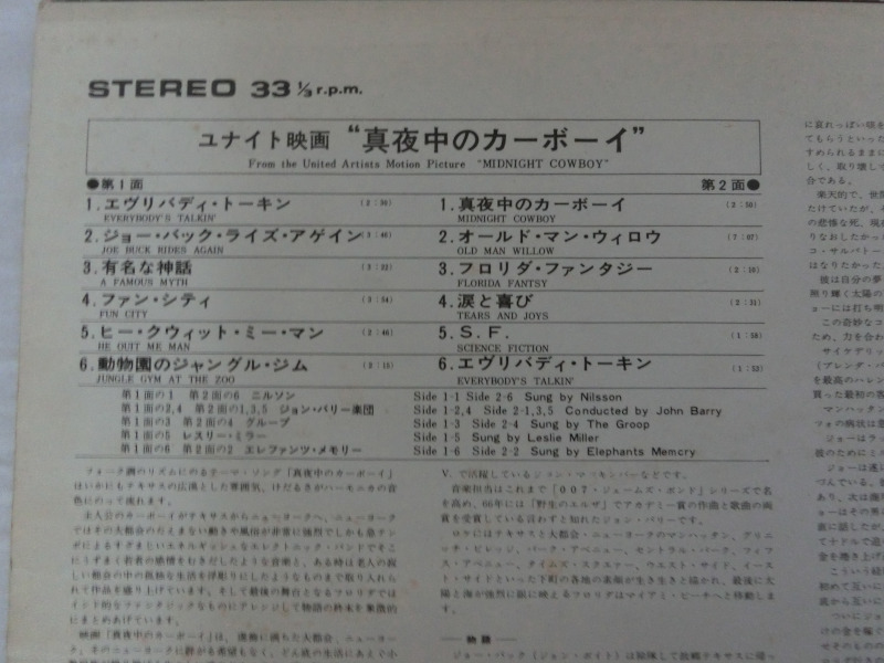 ●真夜中のカーボーイ LP盤 オリジナルb・サウンドトラック MIDNIGHT COWBOY 帯付き ユナイトレコード