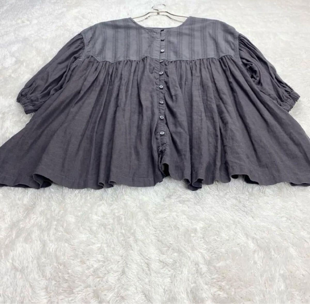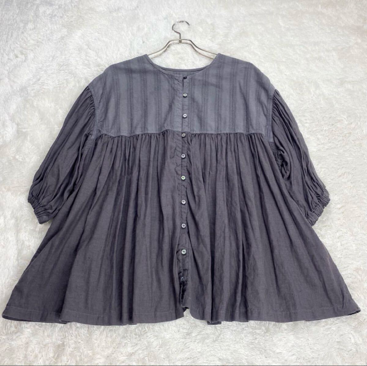 Product name: 23AW ネストローブ【UpcycleLino】×カラミ織り天然染め ドッキングブラウス NEST ROBE 長袖シャツ FREE プリーツ リネン パールボタン