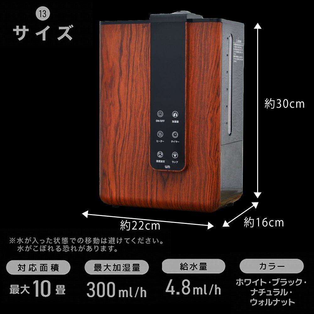 ヒーターで加熱した水を超音波の振動できめ細かいミストにしてお部屋を加湿するタイプ。