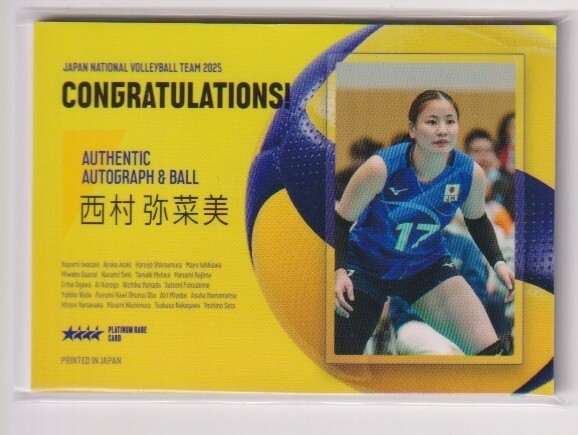 Product name: 2025 女子バレーボール 日本代表 西村弥菜美 直筆サイン ボールカード #04/20