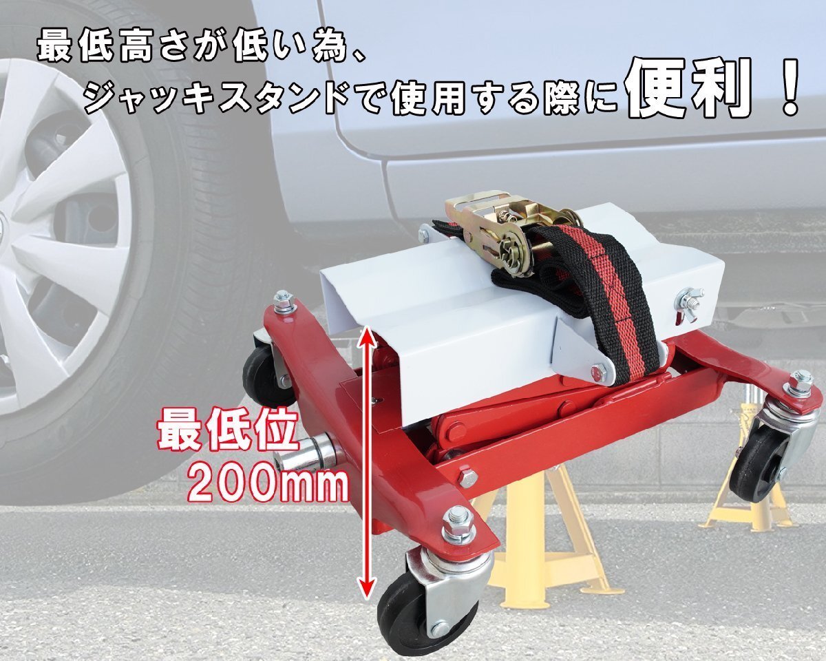 ミッションジャッキ 耐荷重200kg 荷締めベルト ラチェット式付き