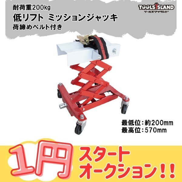 1円~ トランスミッションジャッキ フロアタイプ 低床 パンタグラフ式 耐荷重200kg ラチェット式荷締めベルト付き 50513