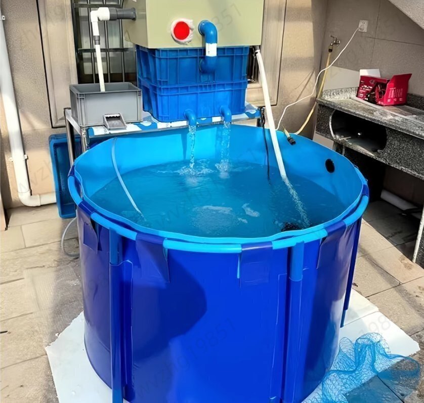 大型円形の帆布魚池厚手支柱 防水布貯水プール養殖水槽錦鯉一時飼育池900L