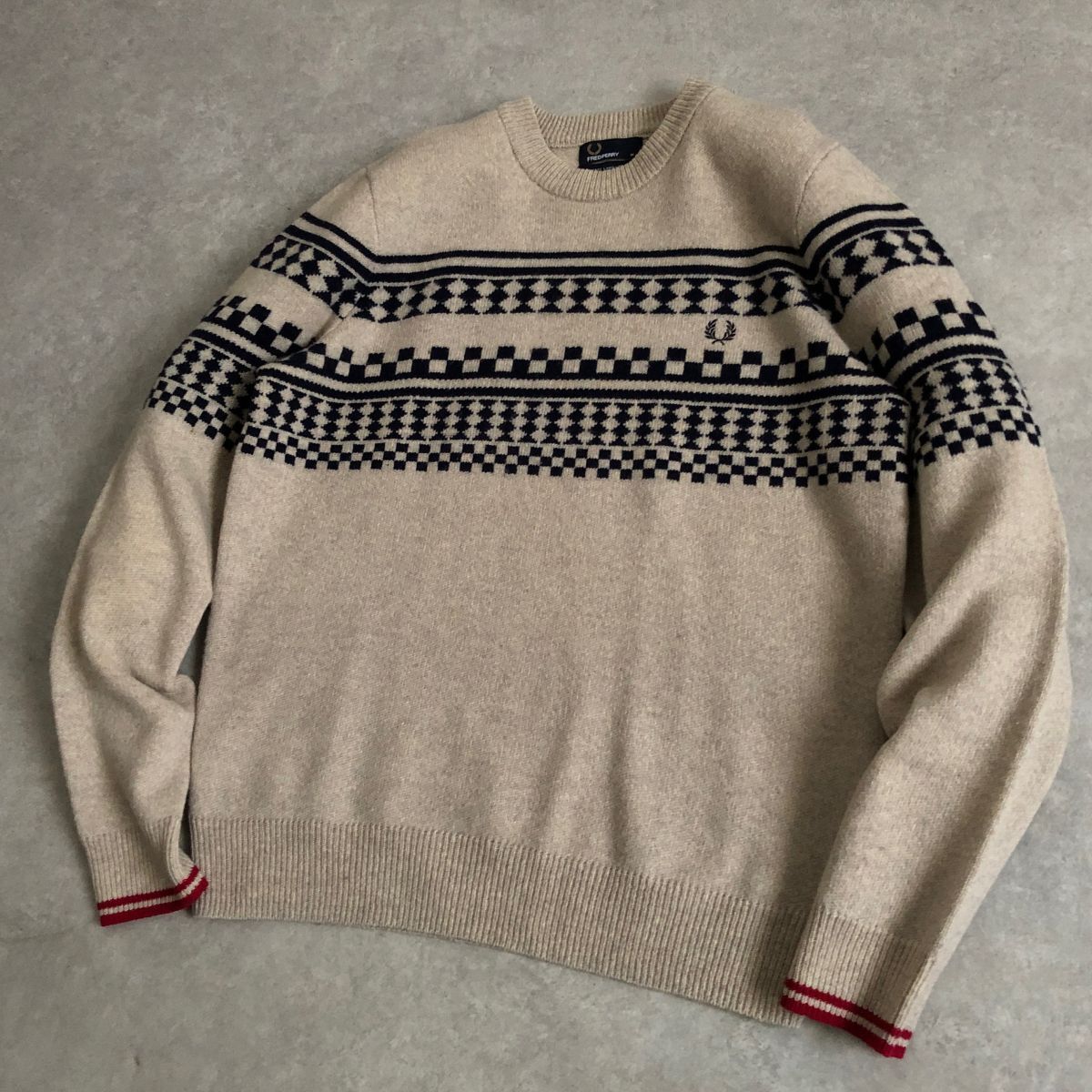 Product name: FRED PERRY●月桂樹ロゴ●幾何学模様ウールニット セーター●フレッドペリー