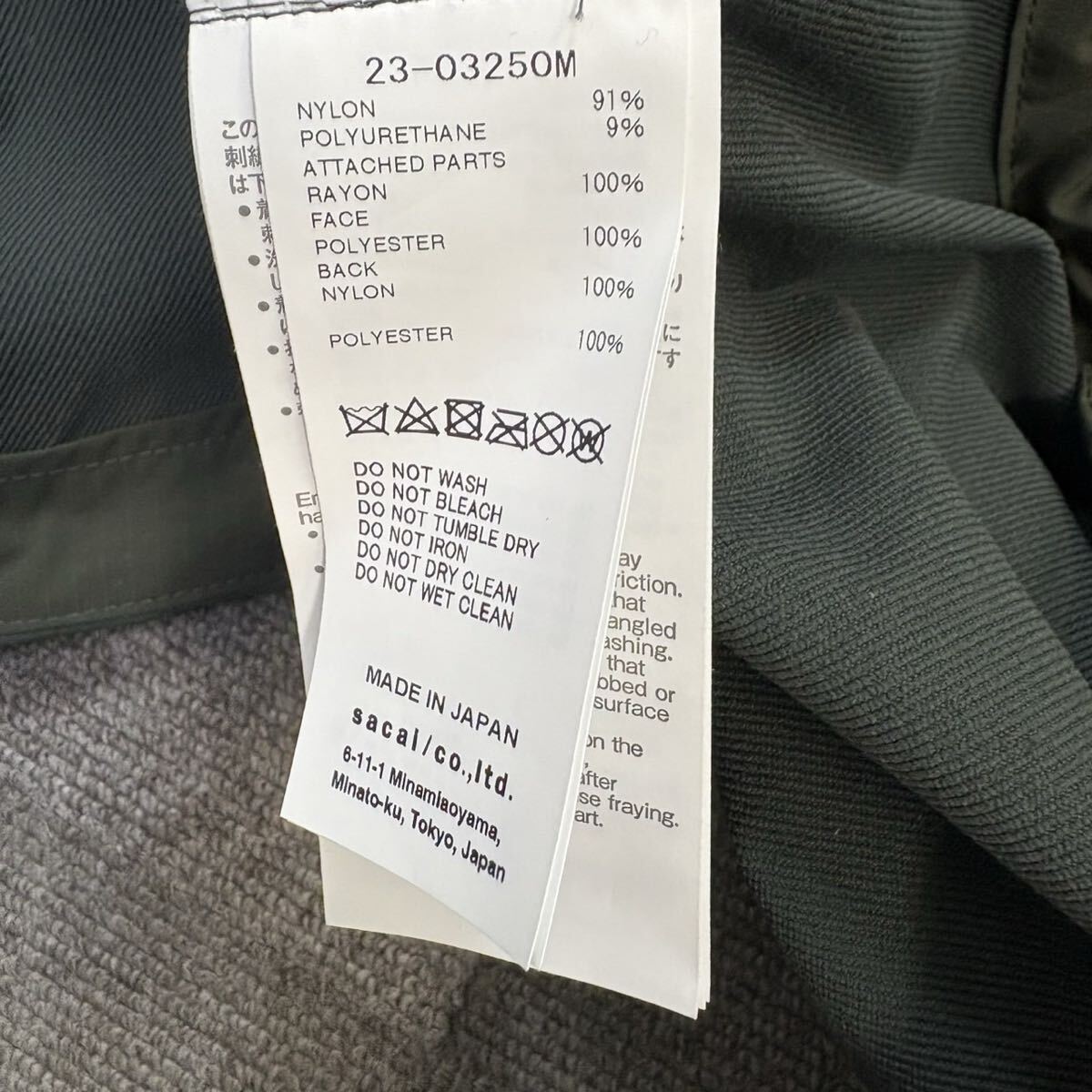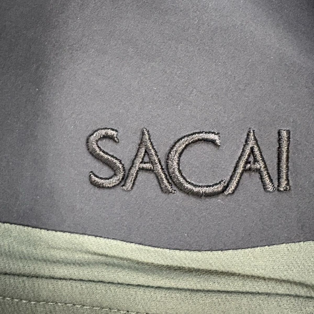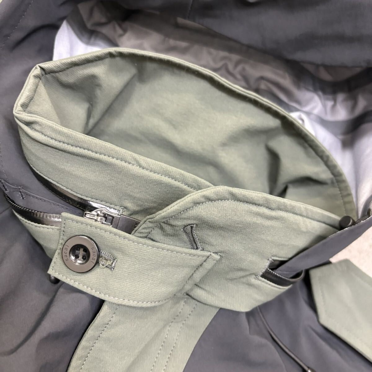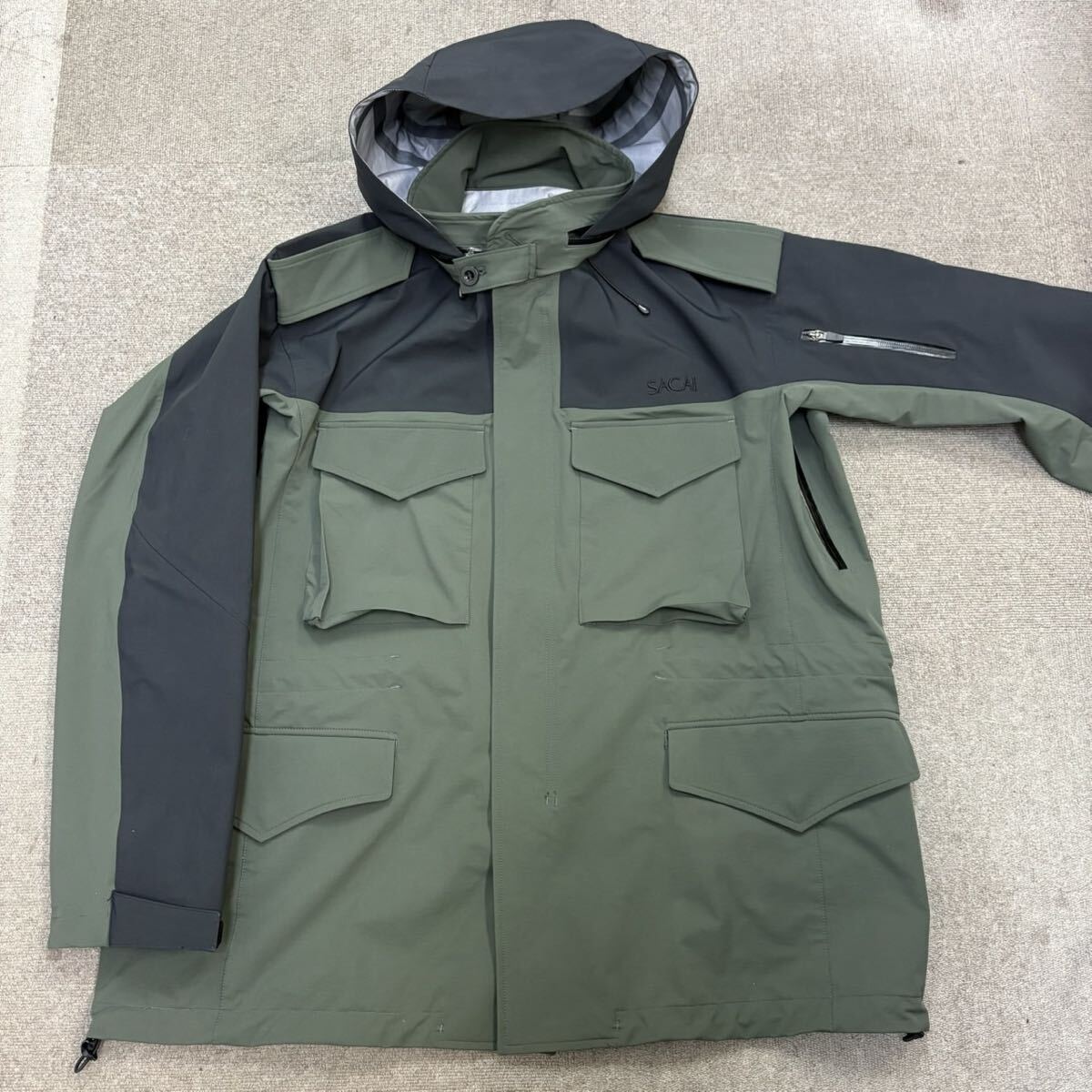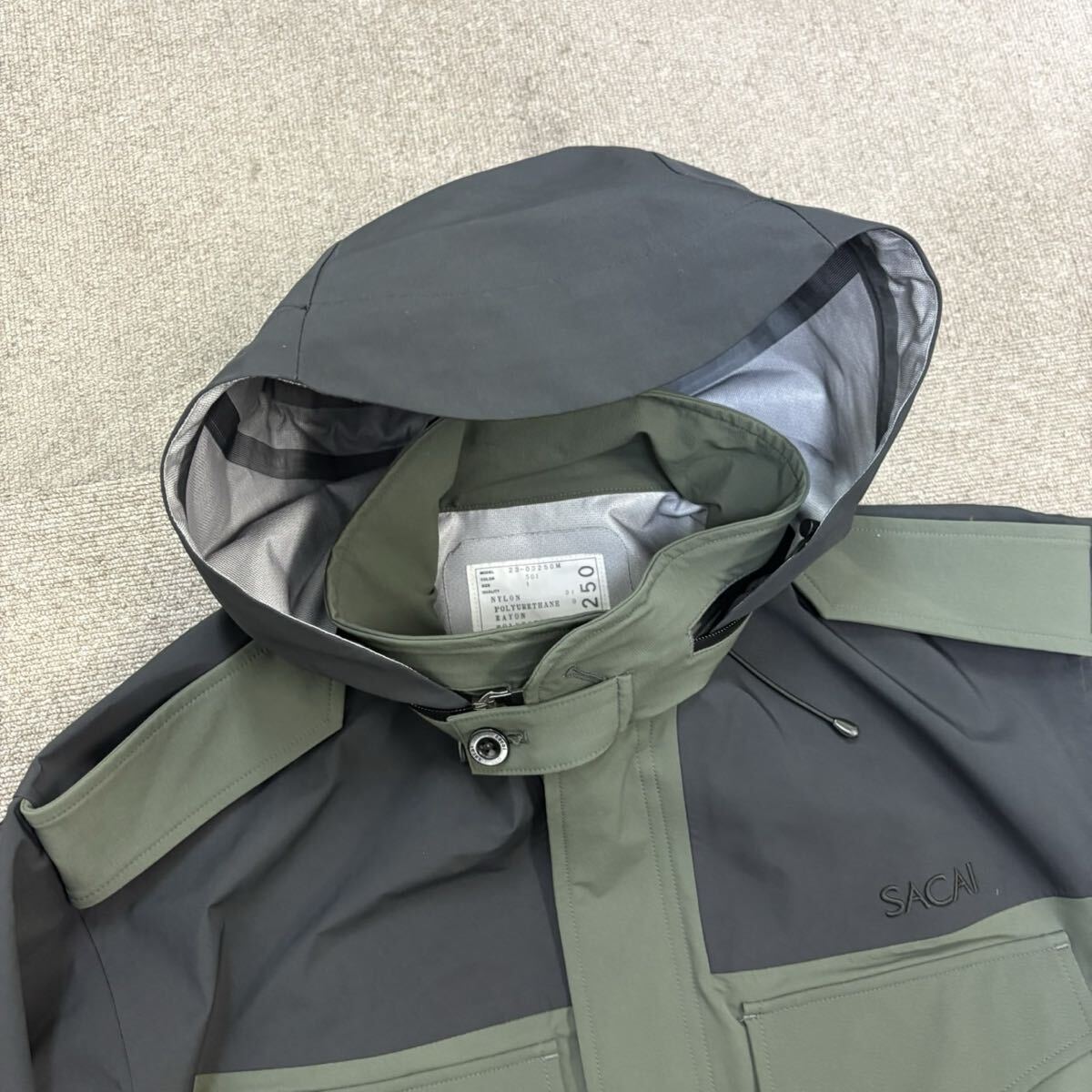 2『試着のみ・23年』 SACAI サカイ メンズ マウンテンパーカー ジャケット ナイロンジャケット フード収納可 ロゴ刺繍 カーキ ブラック 1