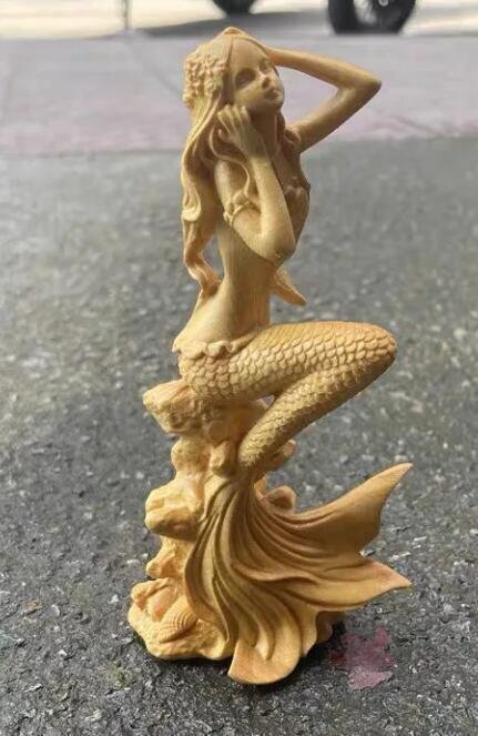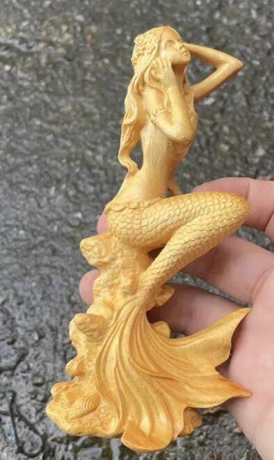 人気新品★黄楊木彫り人魚姫置物実木彫刻