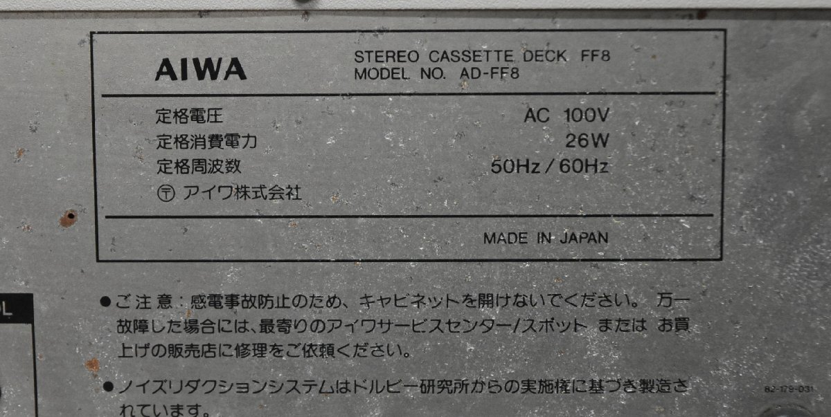 Product name: 【J】AIWA AD-FF8 カセットデッキ アイワ 3074711