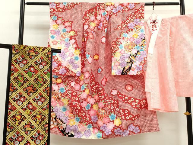 Product name: 平和屋着物[]七五三 女の子 7歳 祝着 四つ身 襦袢・袋帯セット 鞠吉祥花文 金彩 洗える着物 CAAR6650ze