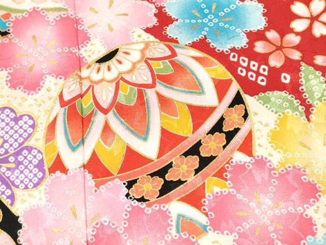 平和屋着物[]七五三 女の子 7歳 祝着 四つ身 襦袢・袋帯セット 鞠吉祥花文 金彩 洗える着物 CAAR6650ze