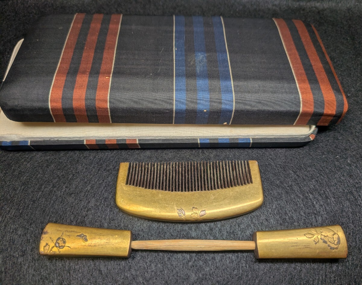 櫛笄セット ケース入り 金彩 螺鈿 銘有り くし まとめ売り③