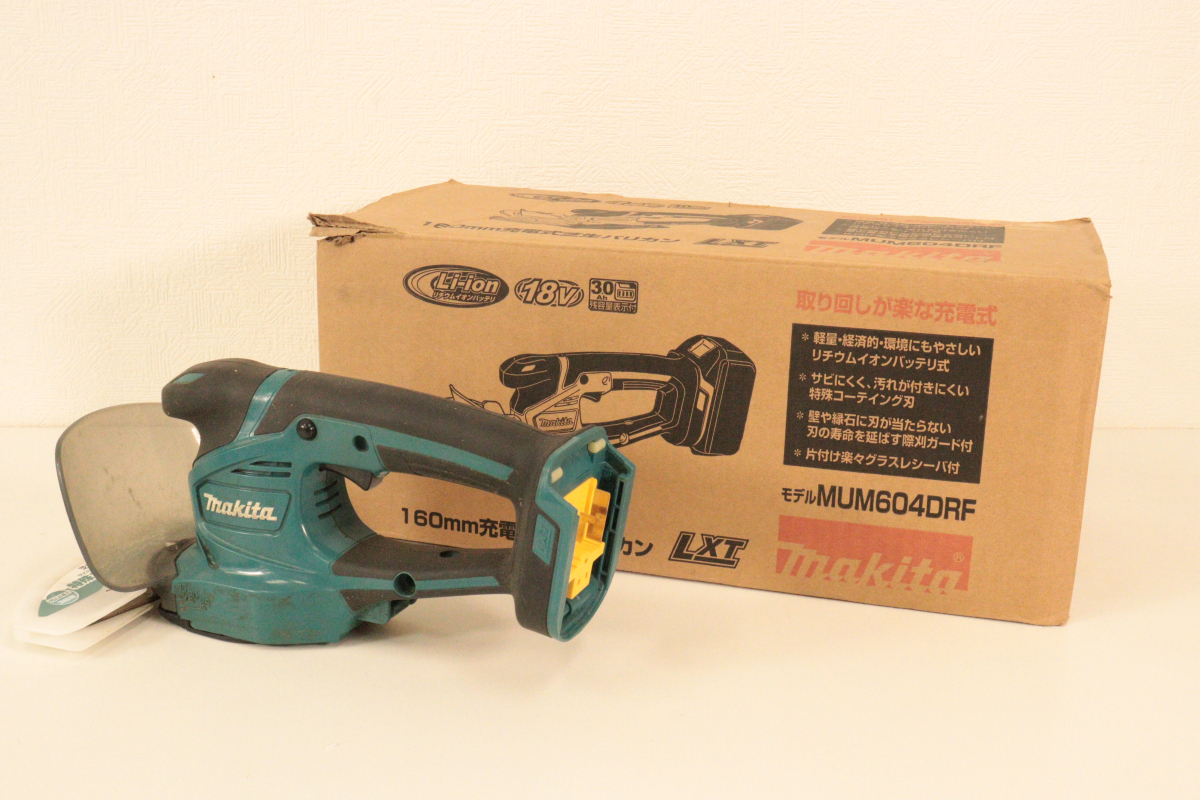 【動作OK】makita MUM604D マキタ 充電式芝生バリカン 160mm 工具 芝刈り 芝刈機 芝刈り機 箱付き 園芸工具 農業機器_IID_C1015-I004