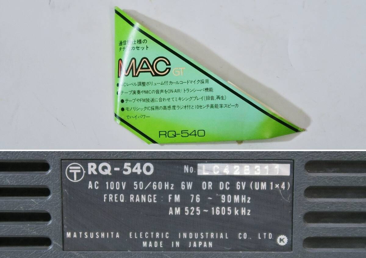 Product name: National/ナショナル RQ-540 ラジカセ (712 美品/ラジオ/AM/FM/MAC/GT