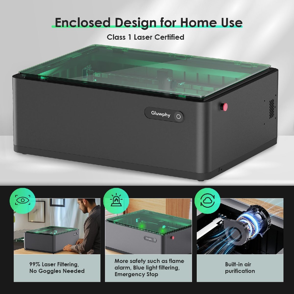 20W ,Gluwphy レーザー刻印機 ,密閉型ダイオードレーザー切断機、初心者向け、クラス1安全レーザー刻印機、木材、金属、アクリルに
