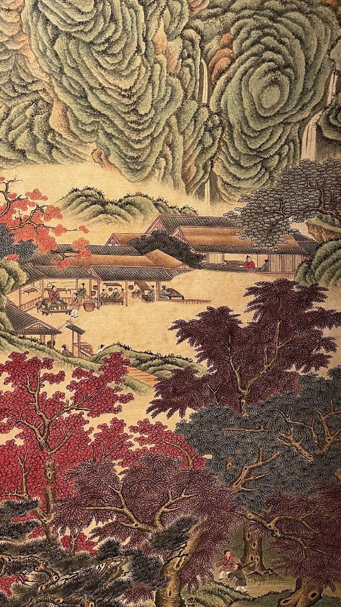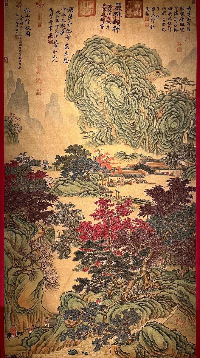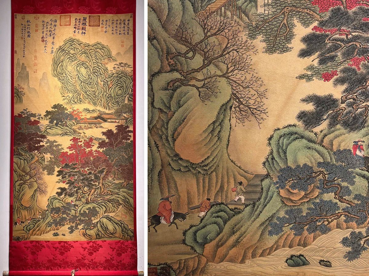 Product name: 【安】中国唐時代画家「楊昇書」絹本「秋山行旅図」巨大掛軸 中国画 墨寶妙品 中国書道 古美術 409