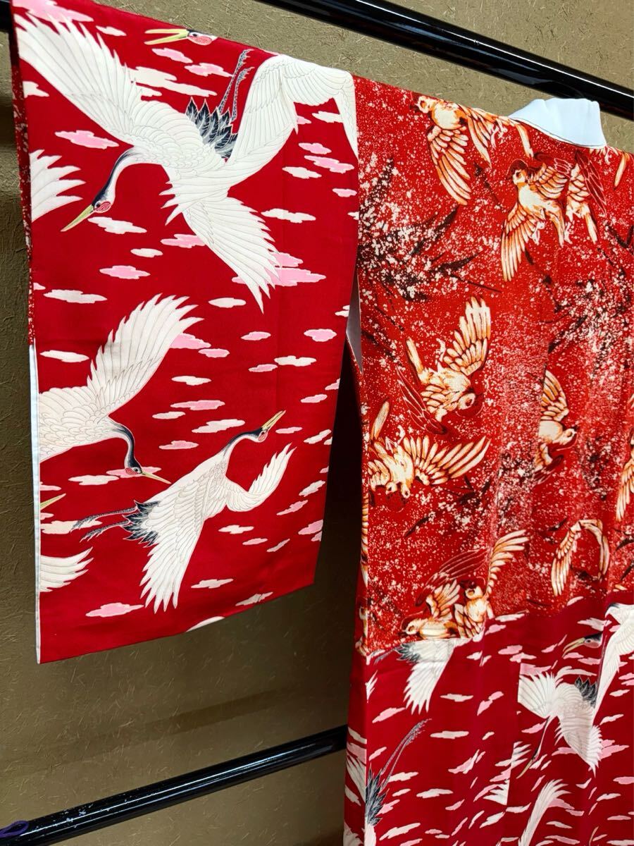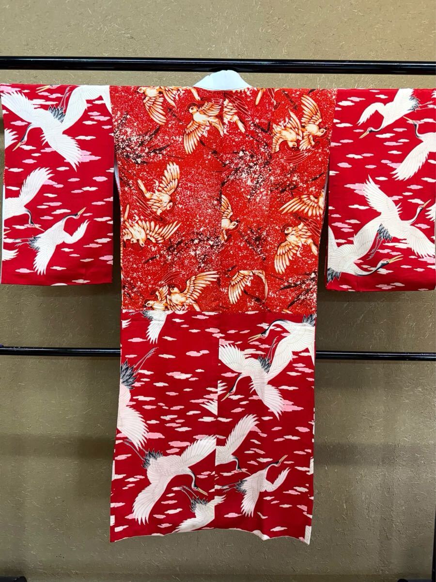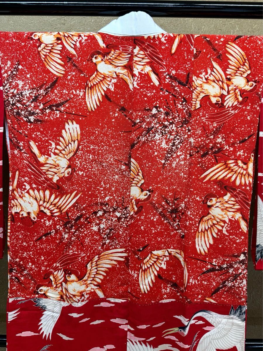 Product name: アンティーク着物◆雀 鶴 縮緬 錦紗 長襦袢 大正ロマン 正絹 リメイク材料にも 古布 古裂 きものさらさ奈良店