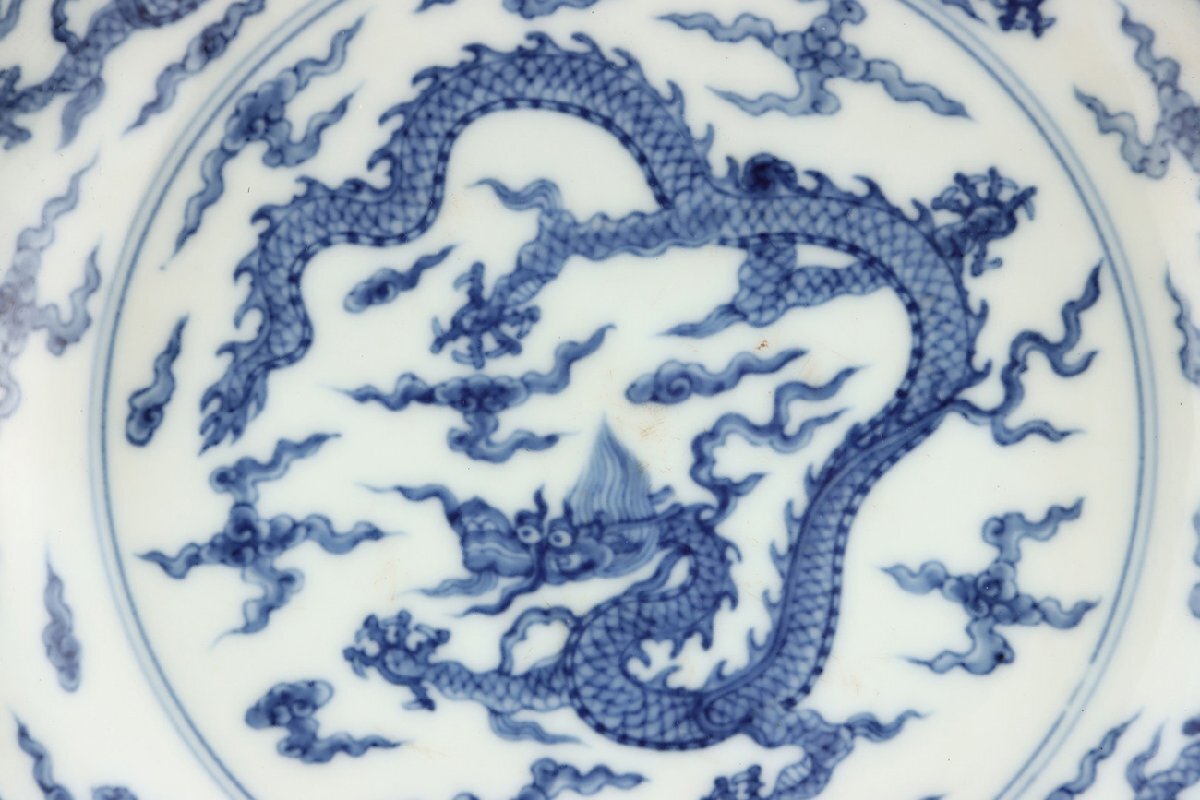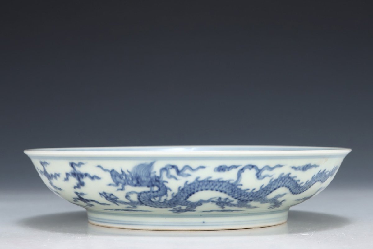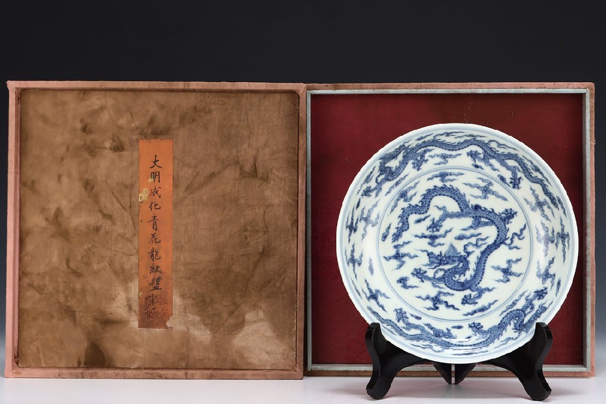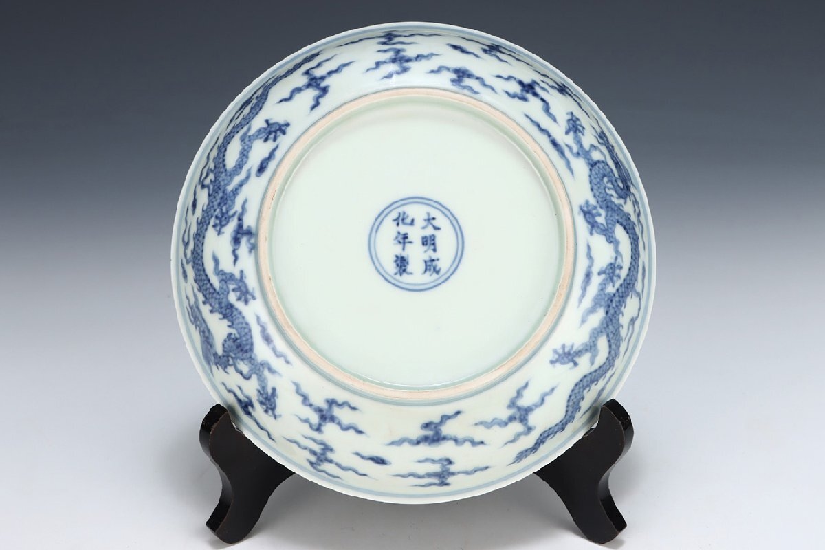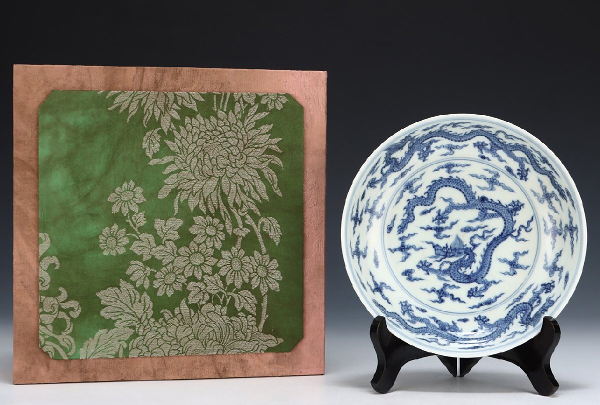 Product name: 【安】明時代 大明成化年製 青花龍紋盤 共箱 唐瓷 染付 古陶瓷 中国古美術 古董品 263