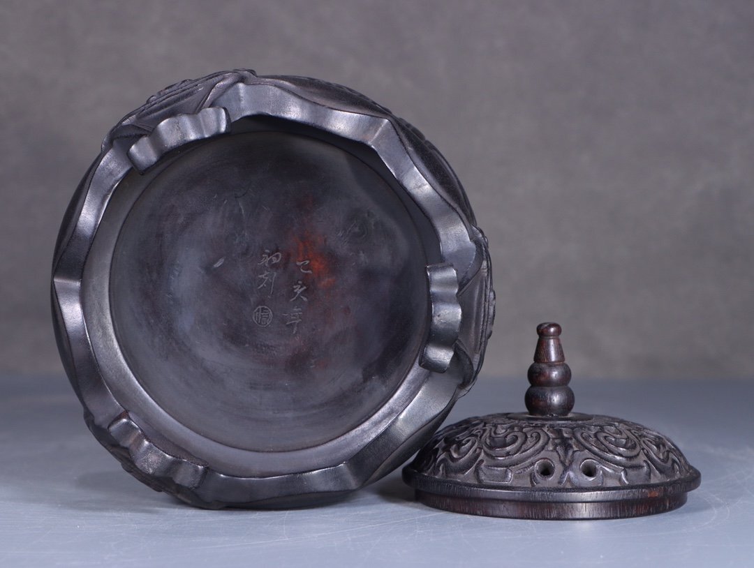 Product name: 【安】清時代 珍木紫檀 福鈕交龍紋香薫炉 極細工 古置物 古擺件 中国古美術 時代物 古董品 310