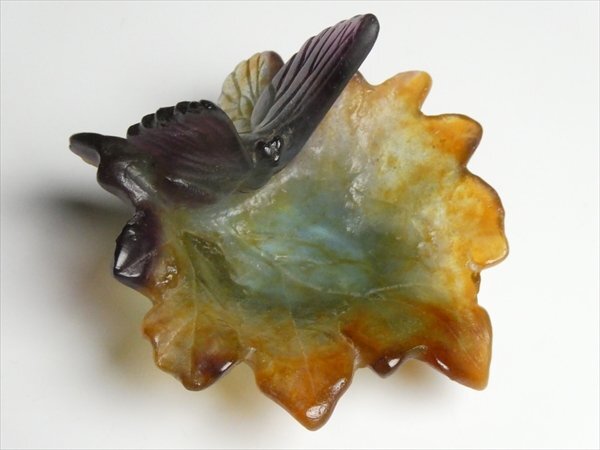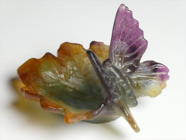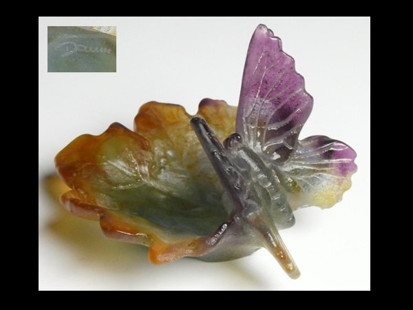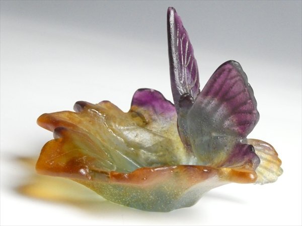 Product name: ドーム クリスタル パート・ド・ヴェール Daum バタフライ リーフ 木の葉と蝶 立体図 プレート トレー 小物入れ 飾物 n541