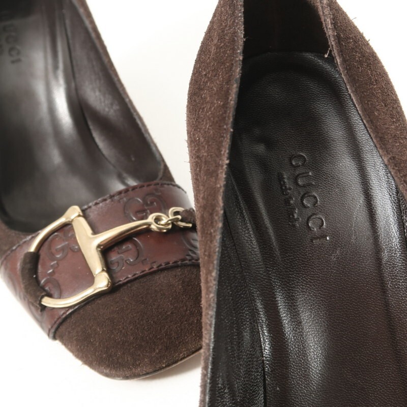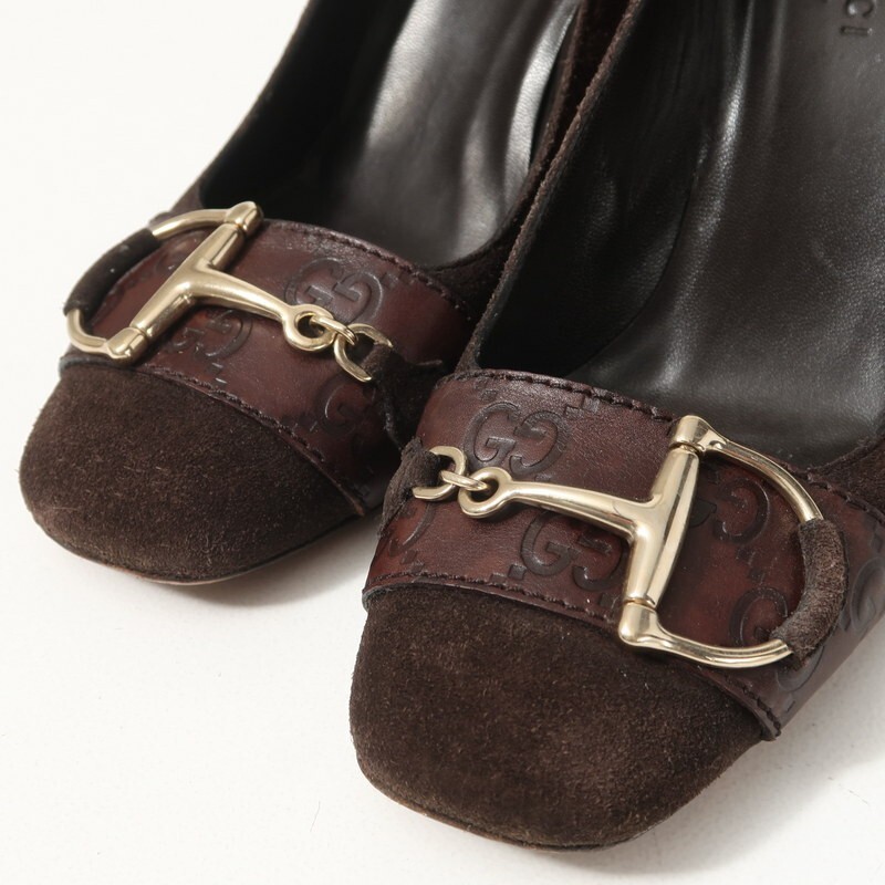 Product name: GS4062▼イタリア製*グッチ GUCCI*スエードレザー グッチシマ GG柄 ホースビット パンプス 36C(23.0cm相当) 靴 チャンキーヒール ブラウン