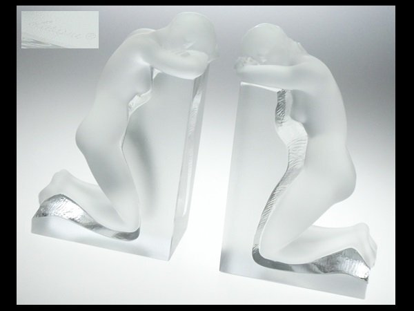 Product name: ラリック フロステッド クリスタル LALIQUE REVERIE 女性 裸婦 ペア 大型 ブックエンド フィギュリン 飾物 1対 2体 総重量7.5kg n600
