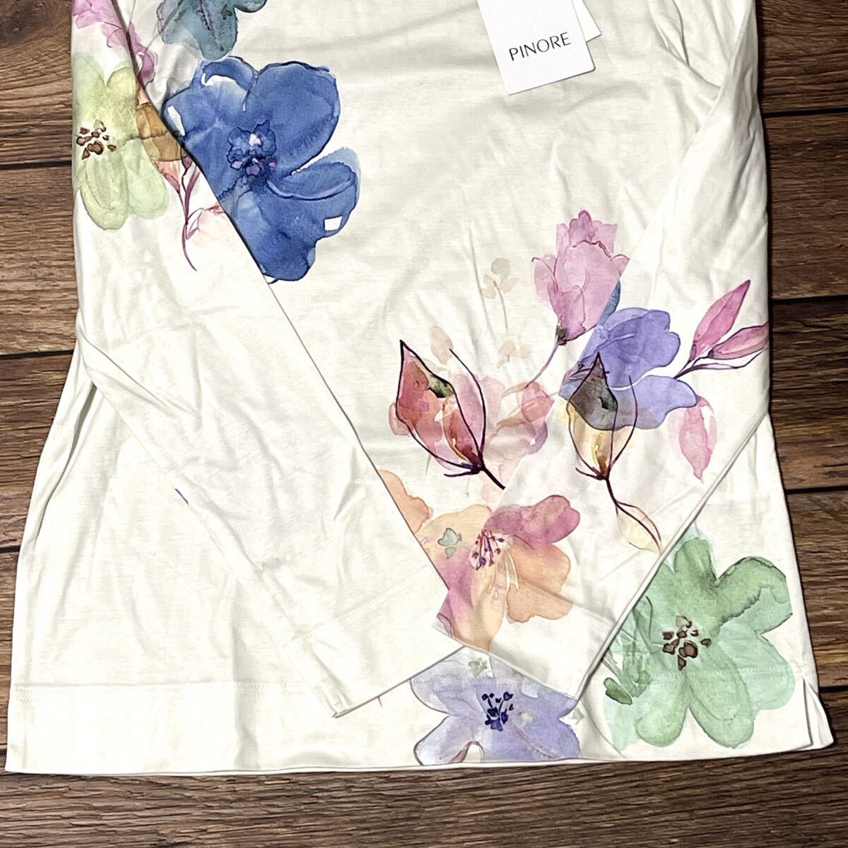 新品 未使用 PINORE ピノーレ ロンT 長袖 レディース トップス 花柄 コットン ロゴ入り プリント 大人 華やか ホワイト サイズ38 M