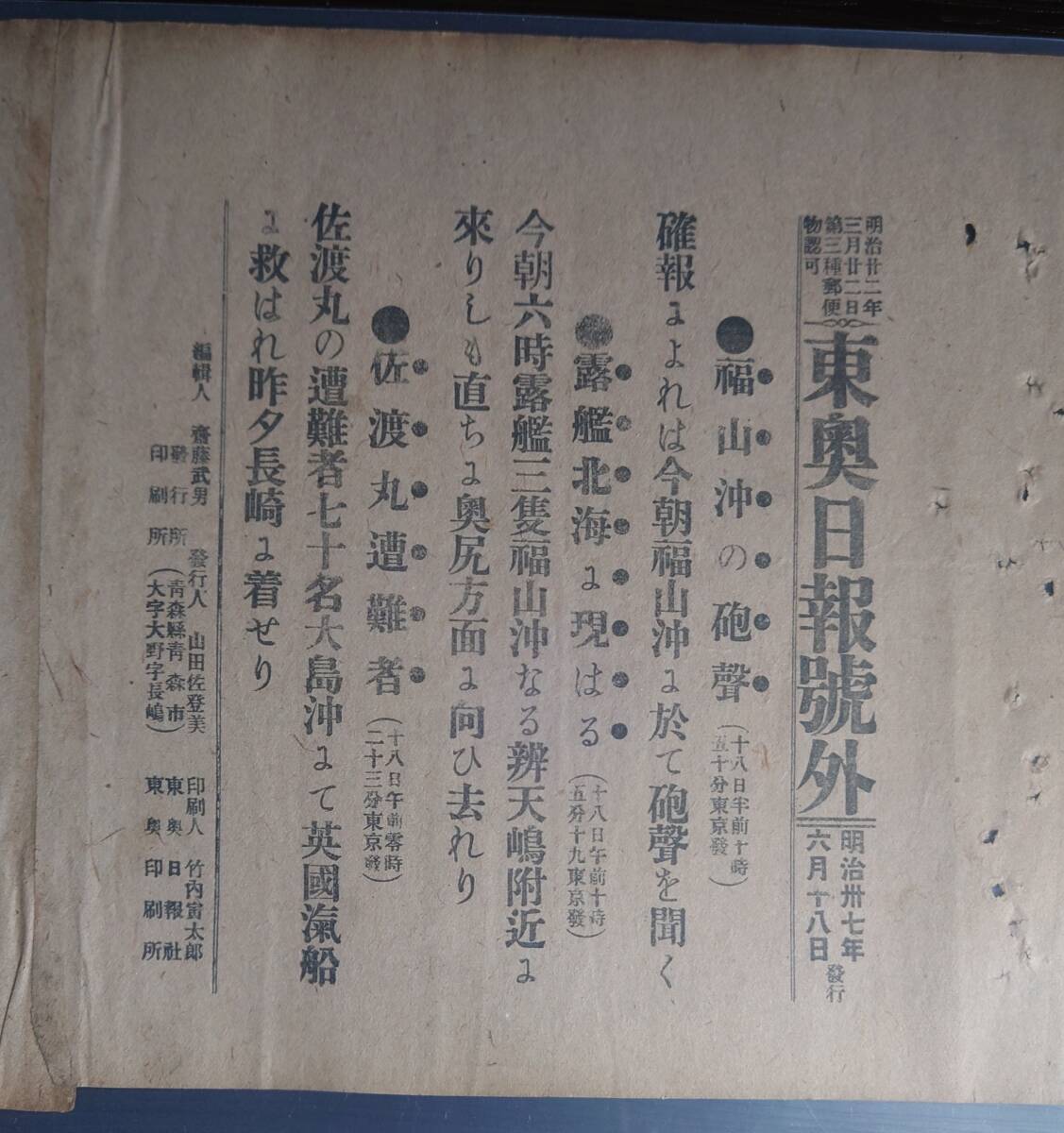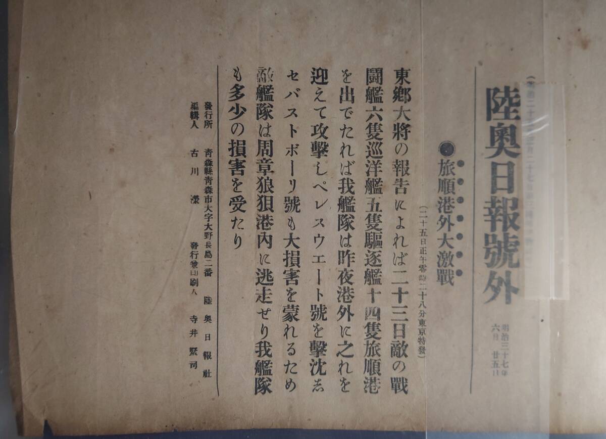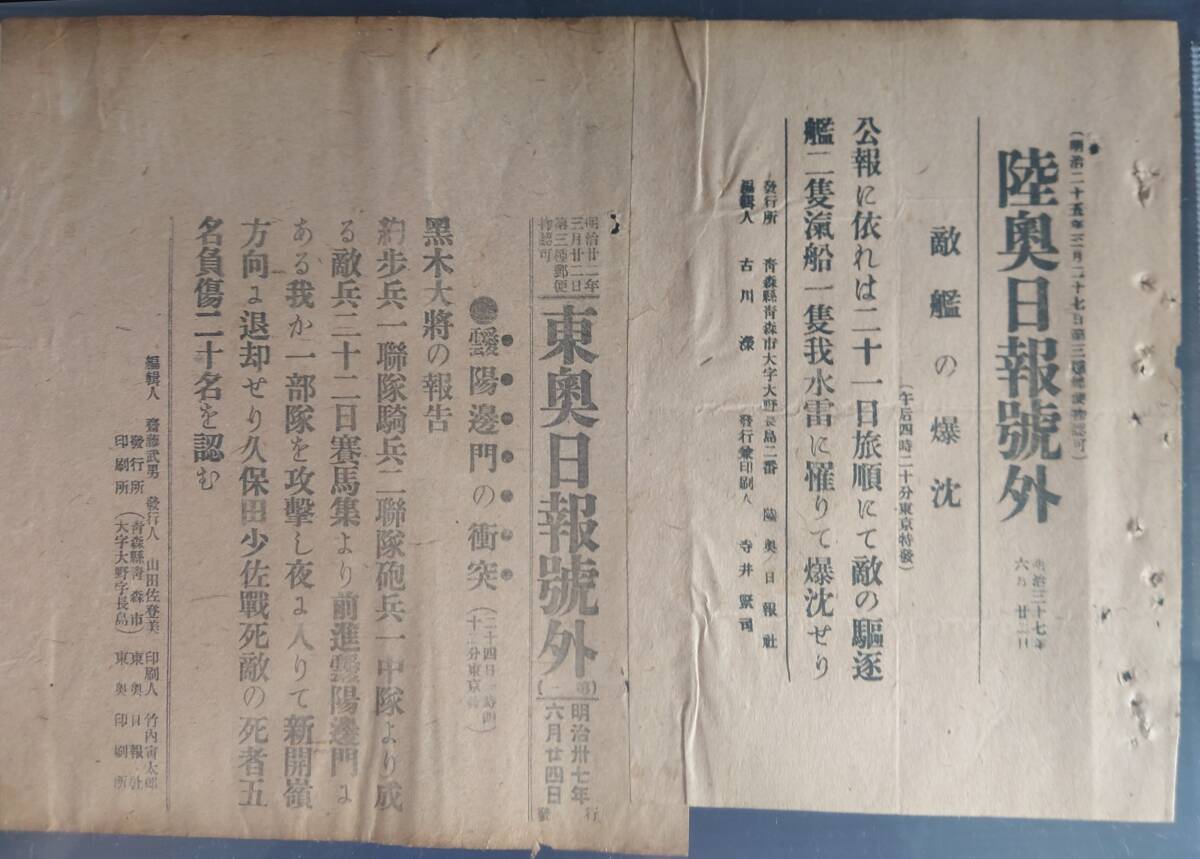 Product name: 120年前(明治37年) 日露戦争(東奥日報)刊号外10枚ファイル④