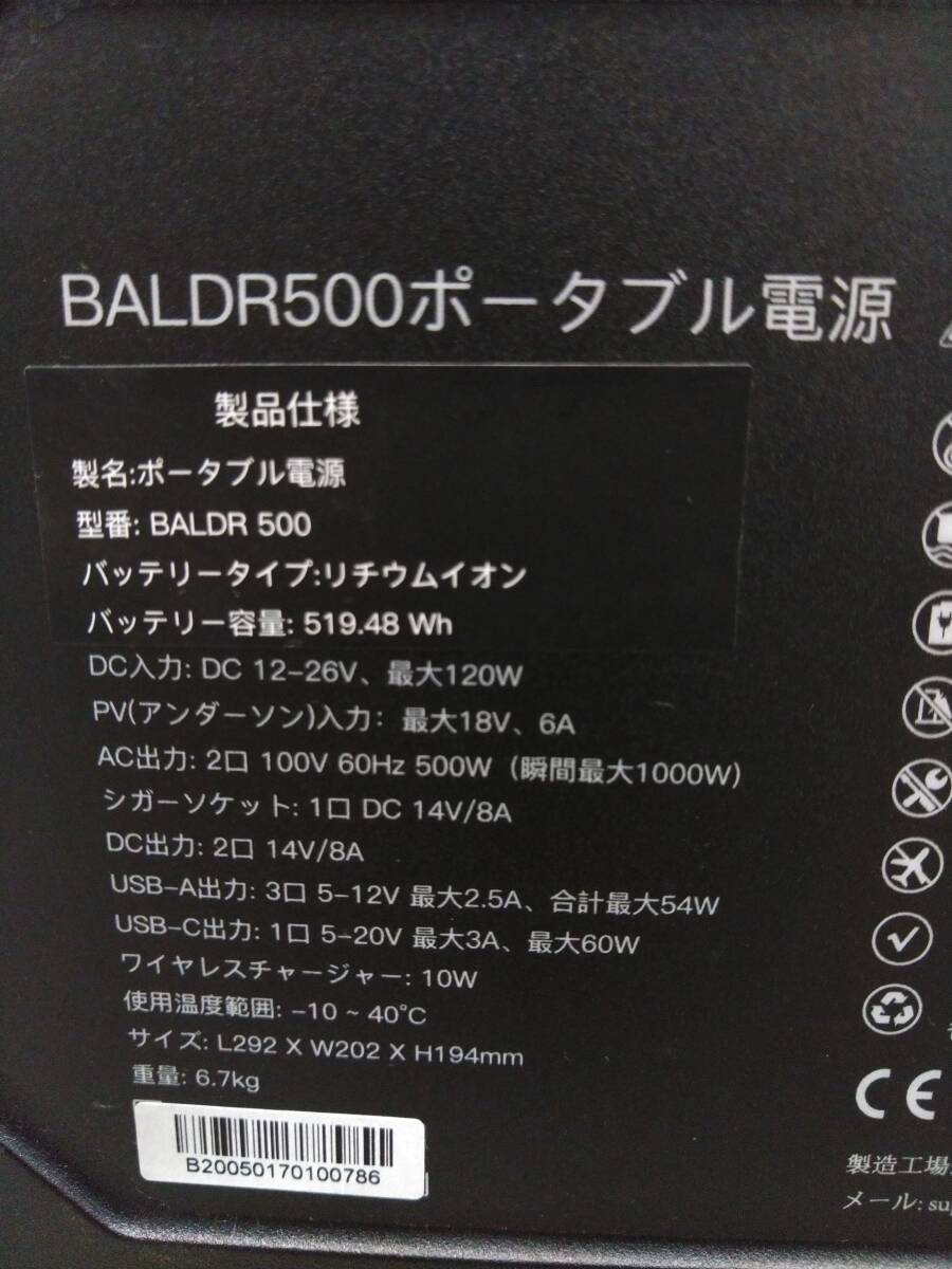 Product name: 25静/A042287-1/OT5000/F112-626/ BALDR500 ポータブル電源 120W