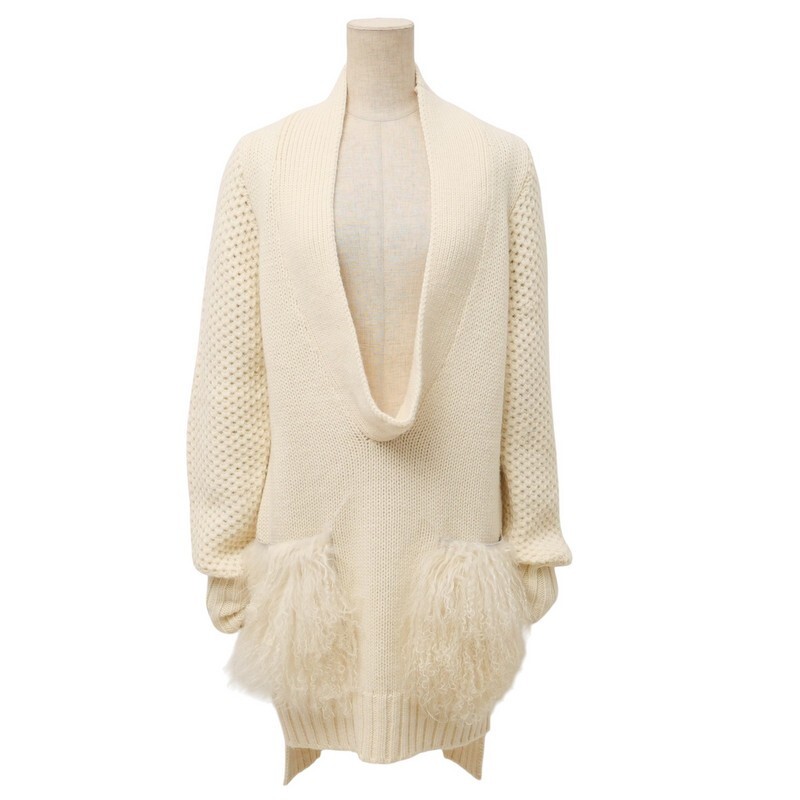 Product name: GR5288●イタリア製*justcavalli/ジャストカヴァリ*ミドルゲージ ウールアルパカ ロング ニットセーター*ゴートファー*レディース サイズS