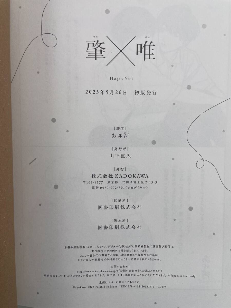 Product name: 肇×唯 (はじゆい)あゆ河 コミック 2023年 令和5年初版【K185553】251022