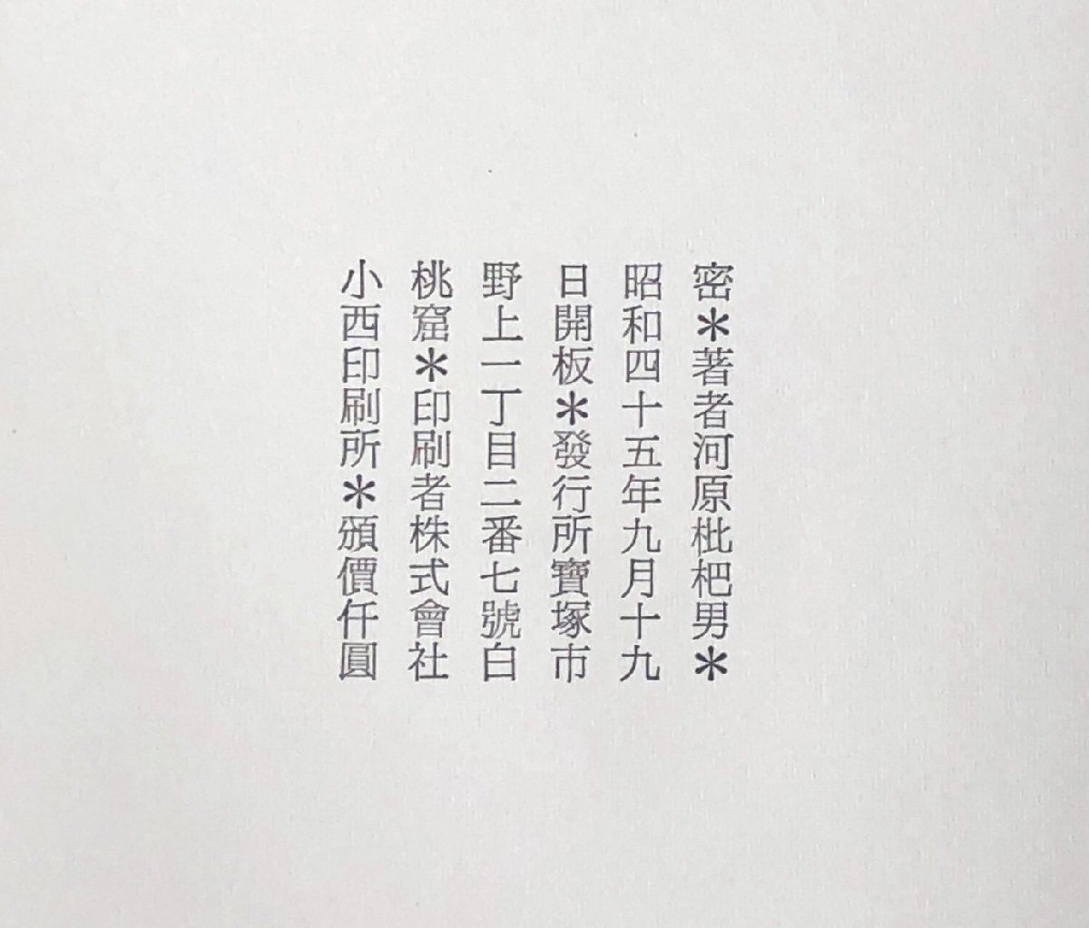 商品名 河原枇杷男 句集 密 白桃窟 昭和45年発行 函付き 私家版 俳句集
