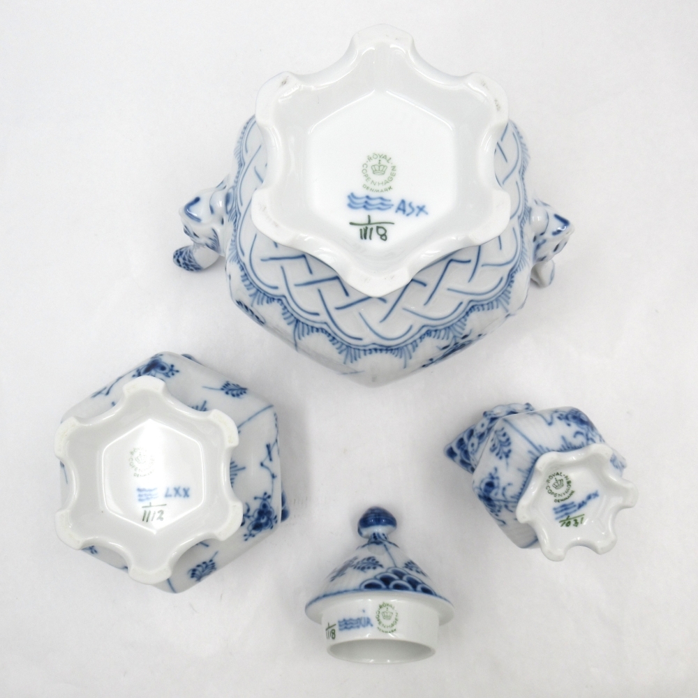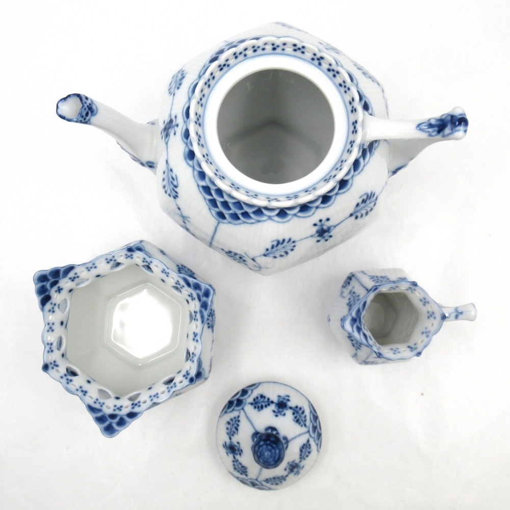 1円〜 Royal Copenhagen ロイヤルコペンハーゲン ブルーフルーテッド フルレース 顔付 ポット/シュガー/クリーマー 計3点 一部箱付 4238200