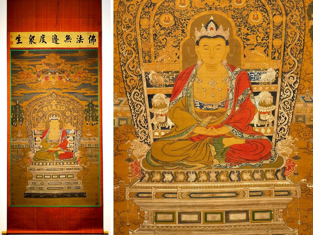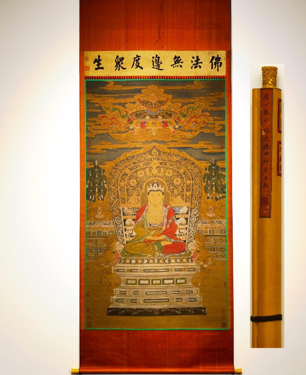 Product name: 【安】中国清時代画家「丁観鵬書」絹本「仏像図」巨大掛軸 中国画 墨寶妙品 中国書道 古美術 371