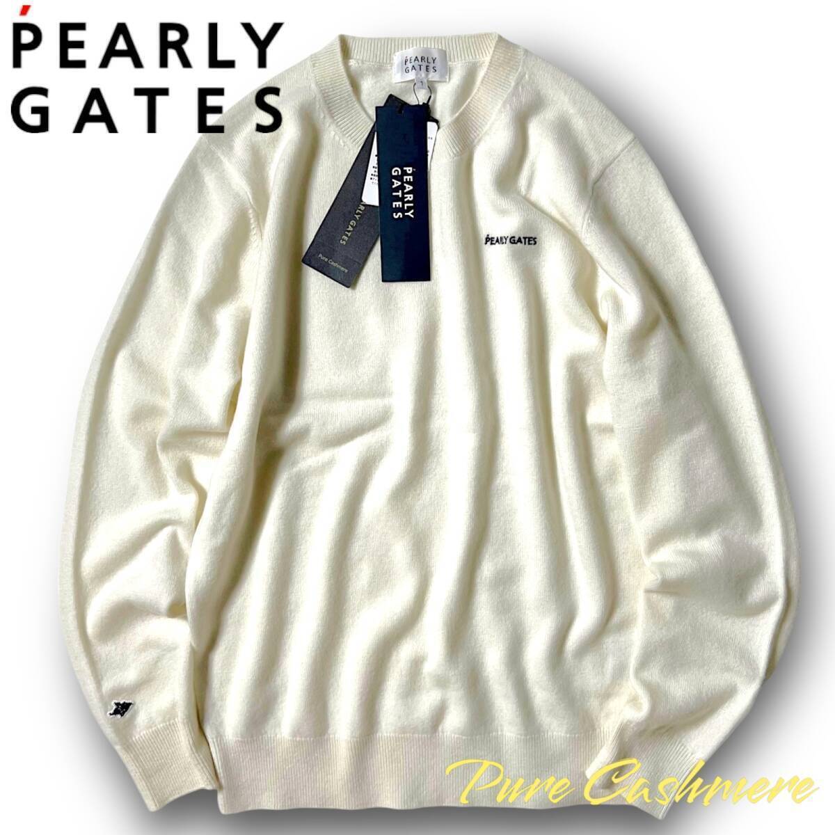 新品 PEARLY GATES パーリーゲイツ カシミヤクルーネックニット ピュアカシミヤ ロゴ刺繍 袖先ワンポイント刺繍 シンプルデザイン 長袖 ニット セーター プルオーバー ゴルフウェア 0 S 相当 レディース GOLF スポーツ レジャー 普段使い タウンユース カジュアル ホワイト系