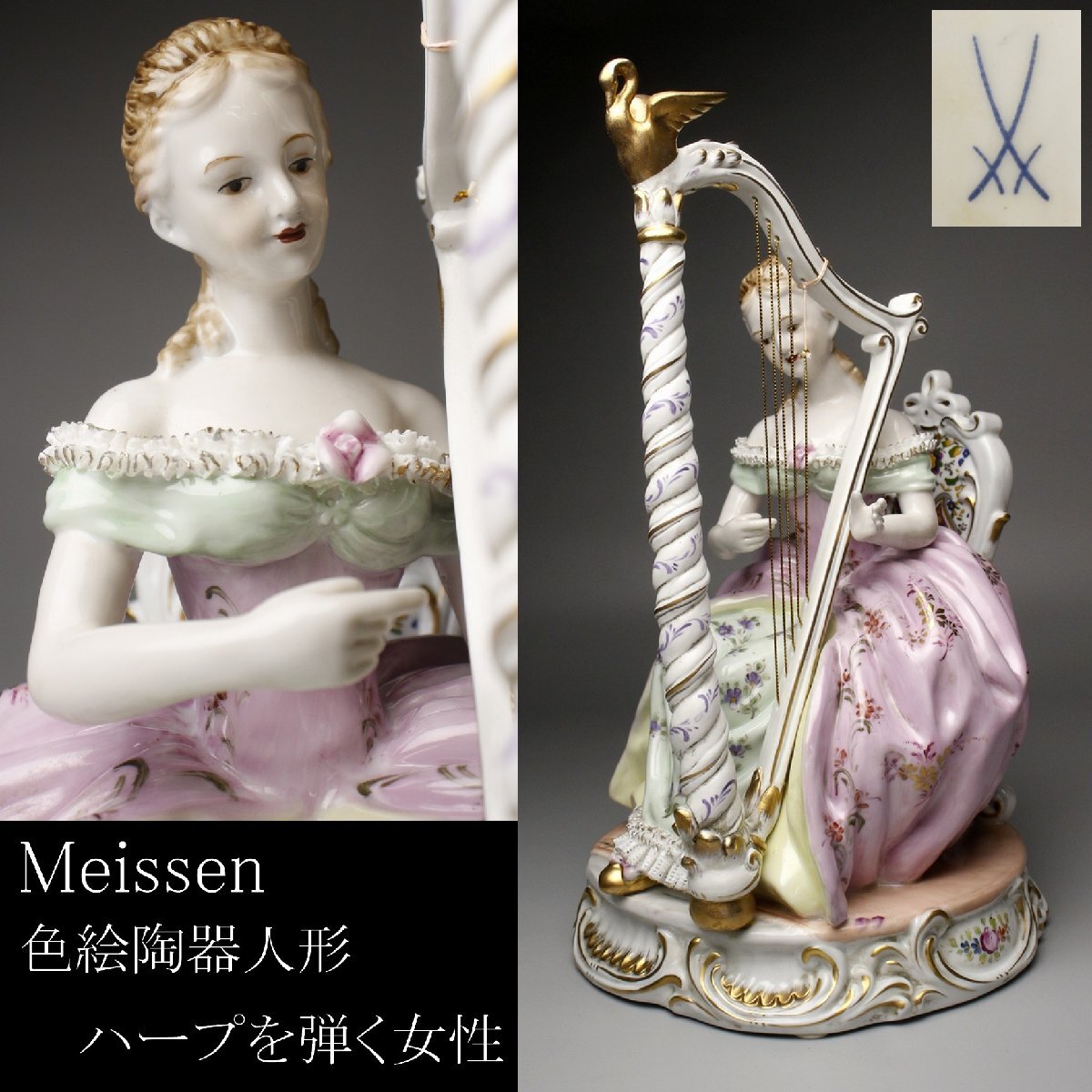 Product name: 【LIG】Meissen マイセン 色絵 陶器人形 ハープを弾く女性 34.5㎝ 女性像 細密造 フィギュリン 資産家コレクター収蔵品 [.YQ]25.9