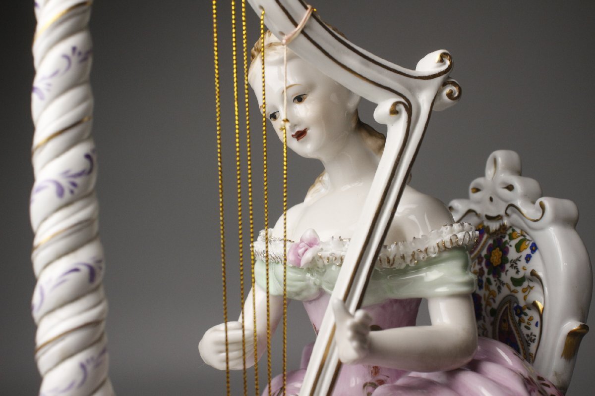 ハープを演奏する優雅な陶器人形のご紹介です。