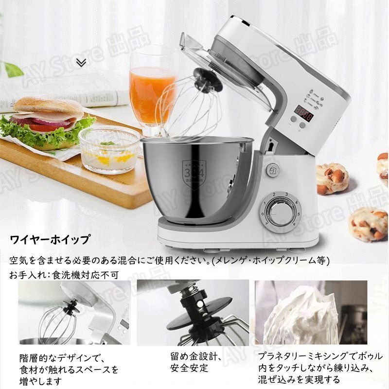 Product name: スタンドミキサー 5L大容量 3種類アタッチメント付き 低騒音 6段階スピード調節 タイミング機能家庭用 業務用 こねる ミキサー 電動bhw0156