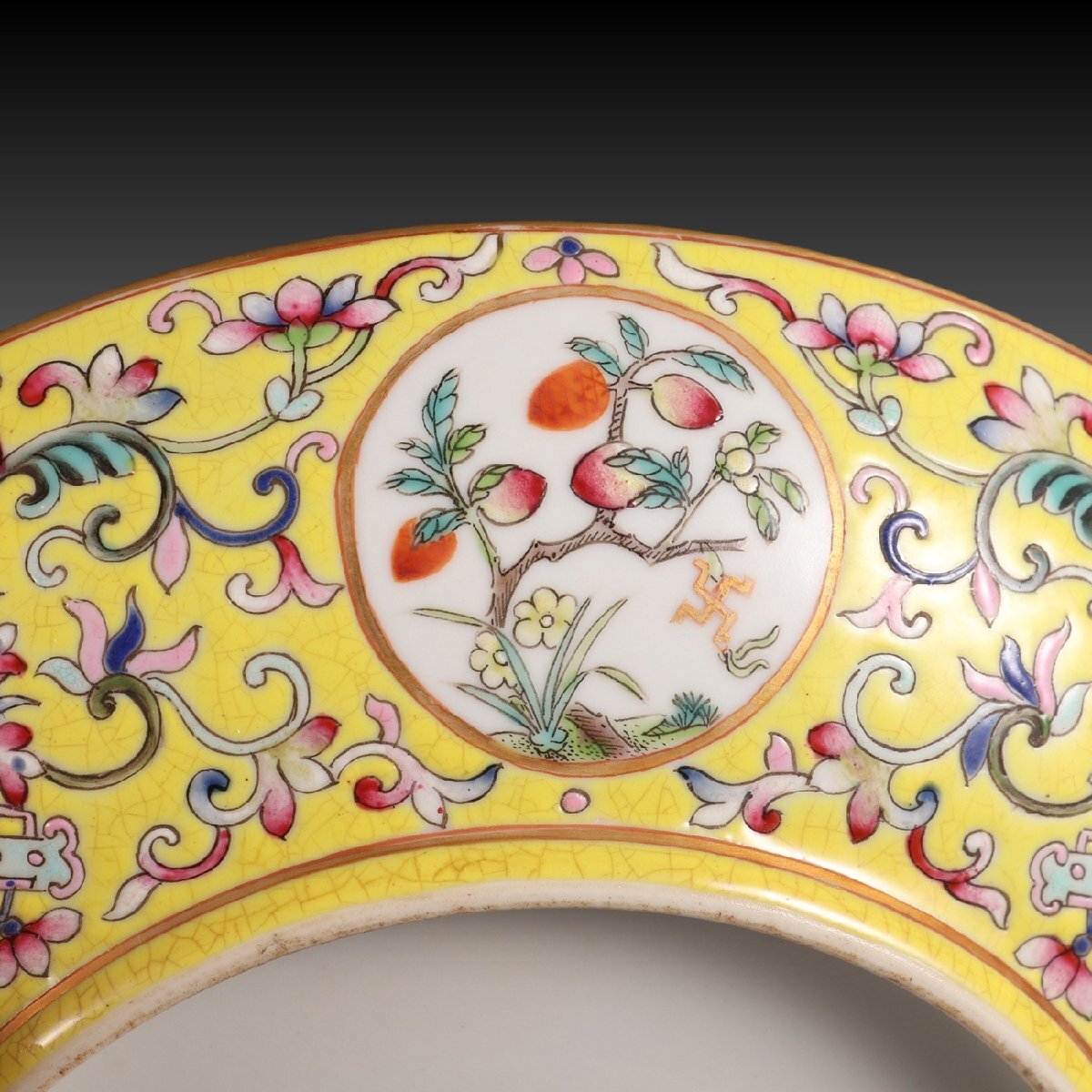 【安】清時代 道光年慎徳堂製 黄地粉彩西番蓮紋内八宝捧寿図盤 共箱 唐瓷 古陶瓷 中国古美術 古董品 253