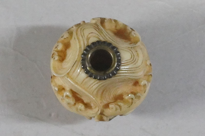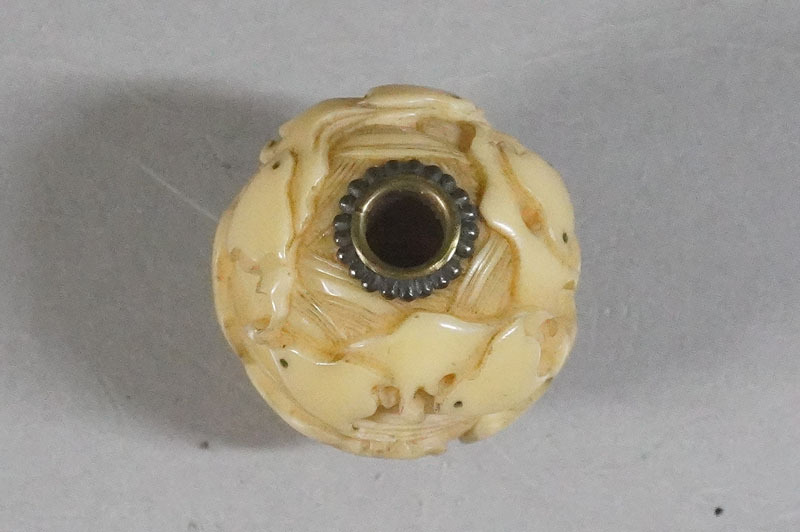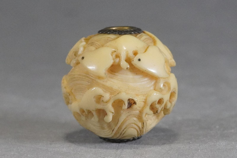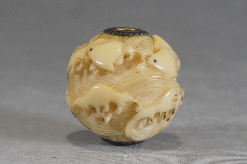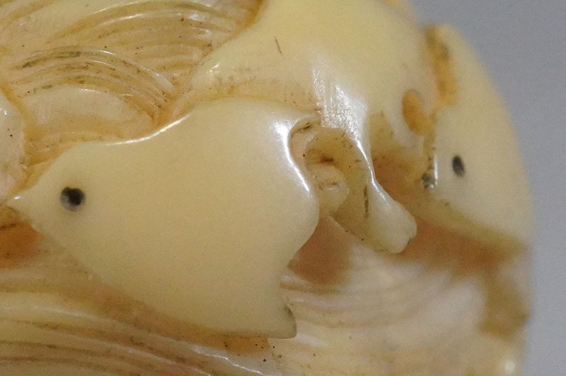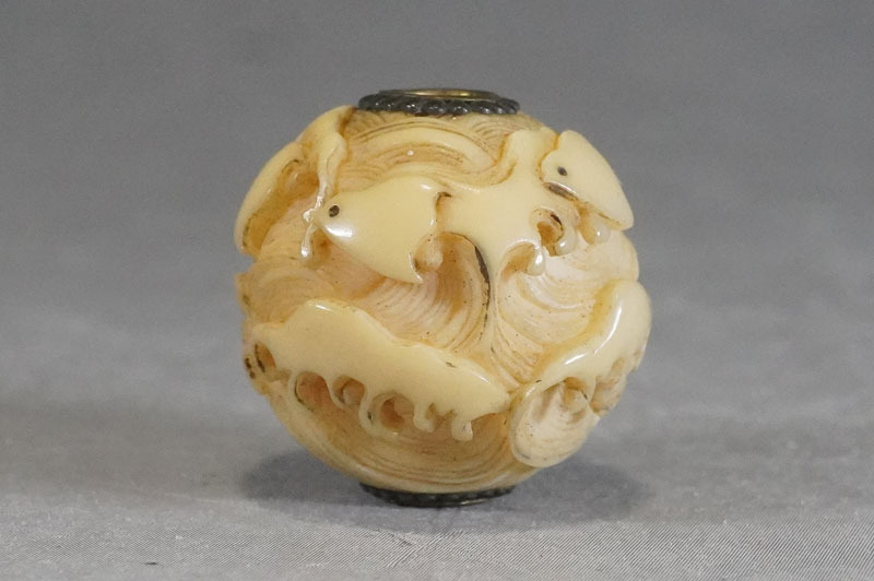 【K574】緒締玉 波千鳥 直径約20mm 細密彫刻 根付 提げ物 装身具