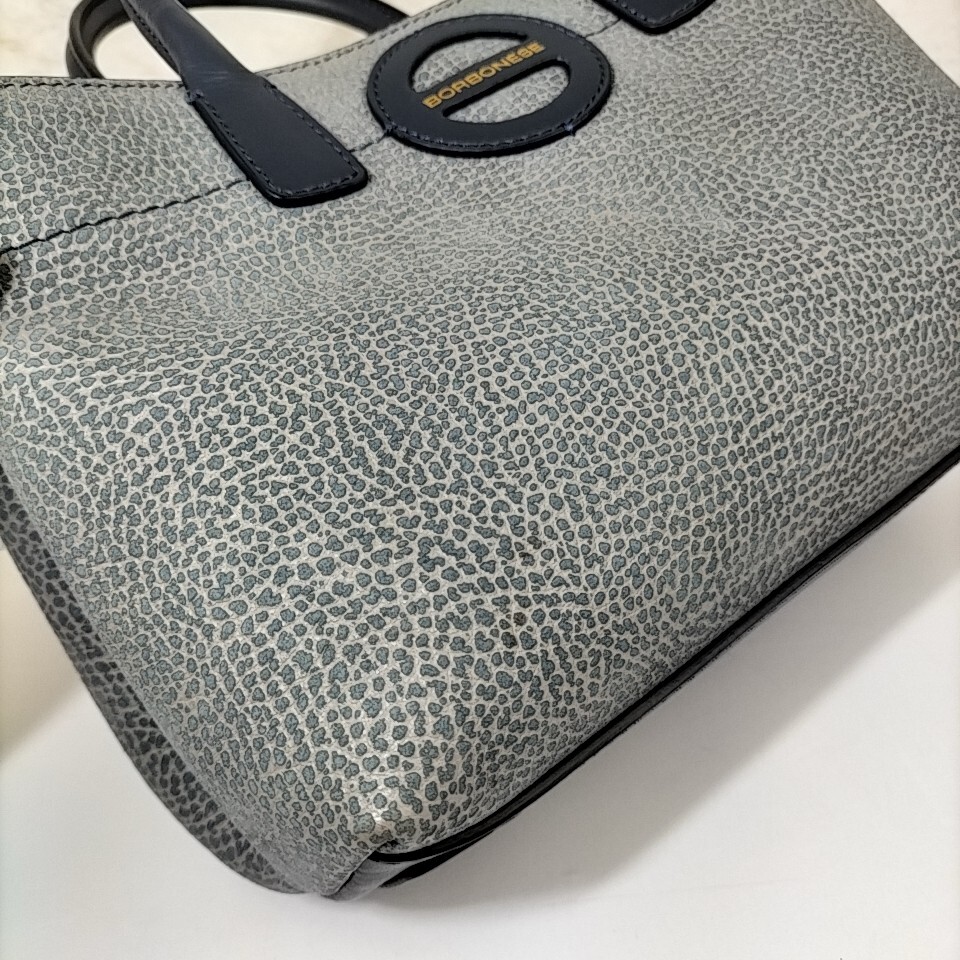 Product name: 【 BORBONESE 】 ボルボネーゼ ロゴプリント レザー 2way ショルダーベルト付き ハンドバッグ 手提げ レディースバッグ 紺系 ネイビー F