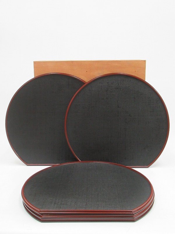 Product name: D3198 平安 象彦 黒塗 布目 半月膳 5客 木製漆器 会席膳 共箱