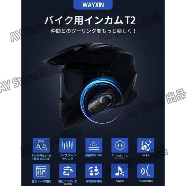 バイク インカム 聴きトーク機能 最大6人同時通話 通信距離1500m 通信自動復帰 Bluetooth5.1 IP67防水 超スリムスピーカー Hi-Fi高音質