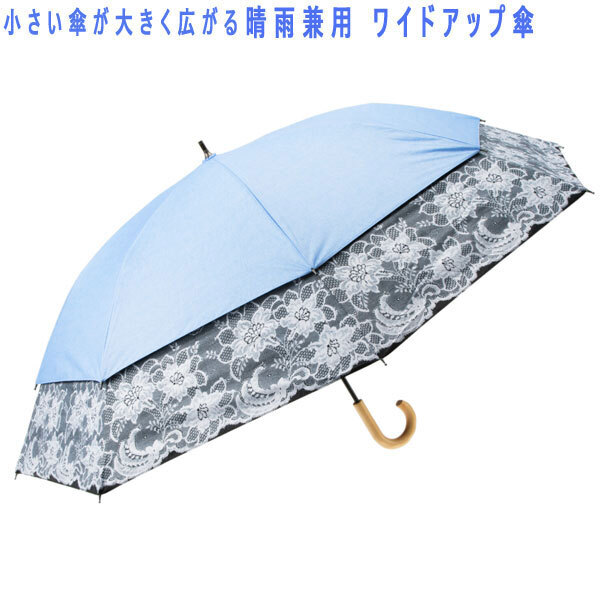送料300円(税込)■lc154■小さい傘が大きく広がる! 晴雨兼用 ワイドアップ傘 サックスブルー 6800円相当【シンオク】
