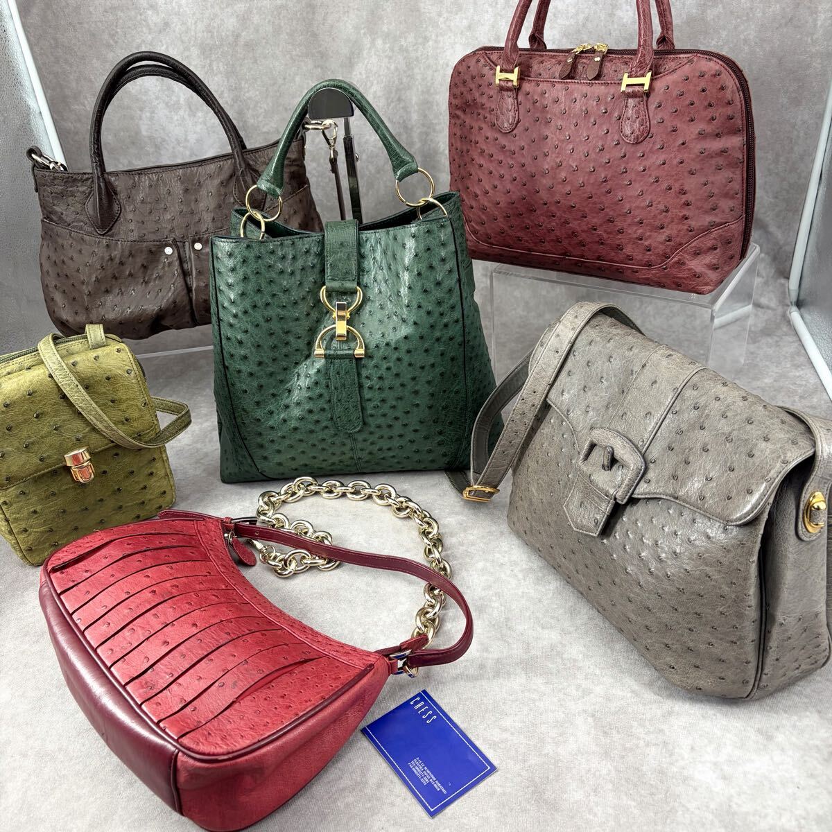 Product name: 1円 まとめ オーストリッチ④ バッグ 【大量 6点 セット】ハンド ショルダー ダチョウ 本革 レザー フルポイント ゴールド金具 カラー