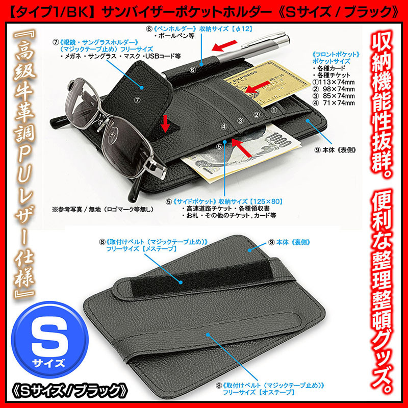 クラウン車 30クラウン 王冠マーク エンブレム付※客注品/サンバイザー ポケット ホルダー《Sサイズ・ブラック》【タイプ1C3/BK】眼鏡 サングラス 各カード 各チケット 収納 整理 各種ケース/欧米仕様/ブラガ