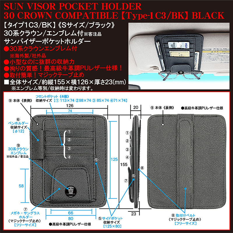 是非この【タイプ1C3/BK】30系クラウン王冠ロゴマーク エンブレム付サンバイザーポケットホルダーを日々のパートナーアイテムとしていかがですか!